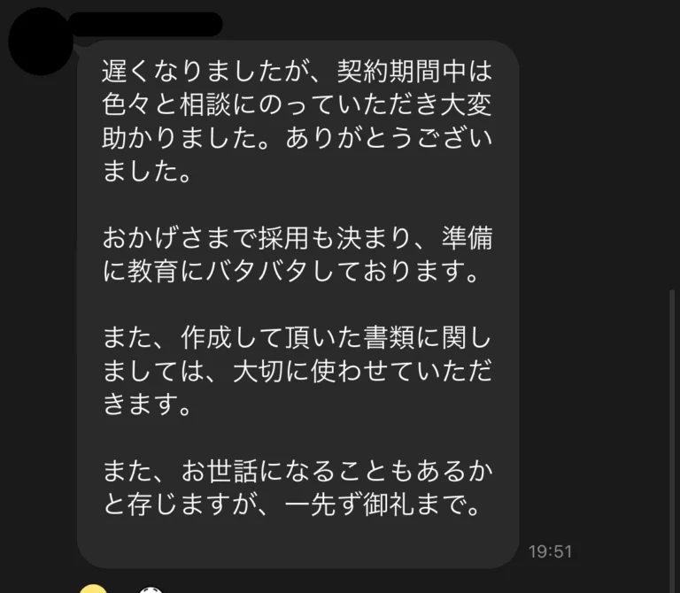 契約期間中は色々と相談にのっていただき大変助かりました。ありがとうございました。