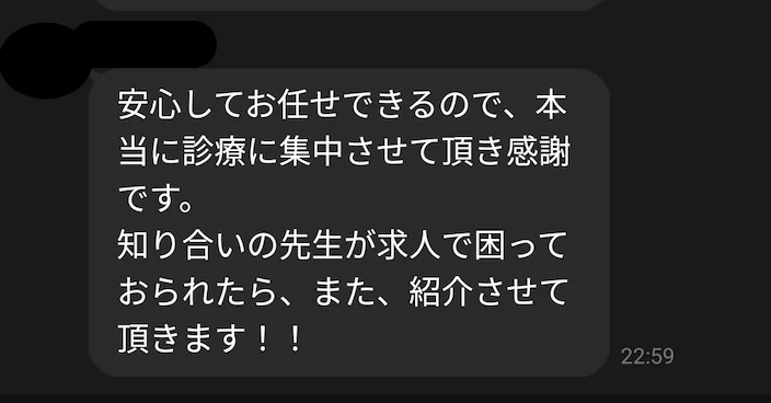 安心してお任せできるので、本当に診療に集中させて頂き感謝です。