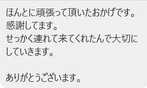 ほんとに頑張って頂いたおかげです。感謝してます。