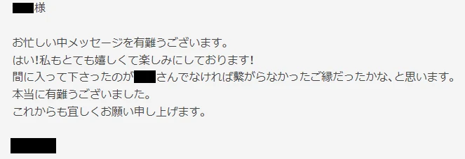 間に入って下さったのが**さんでなければ繋がらなかったご縁だったかな、と思います。