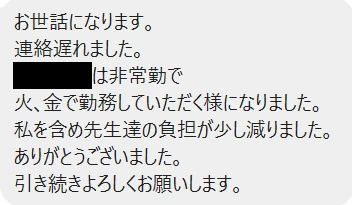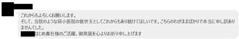 そして、当院のような弱小医院の救世主としてこれからもあり続けてほしいです。こちらのわがままばかりで本当に申し訳ありませんでした。
