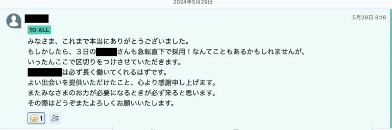 採用は、また必要になってきますので、そう遠くない先にお願いすると思います。その時はまた宜しくお願い致します。