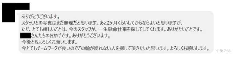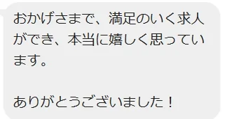 おかげさまで、満足のいく求人ができ、本当に嬉しく思っています。