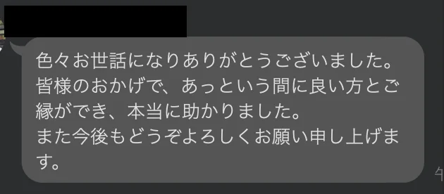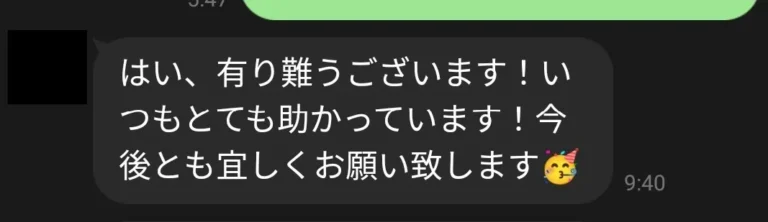 いつも親身になってくださったり、迅速なご対応に心より感謝しております。